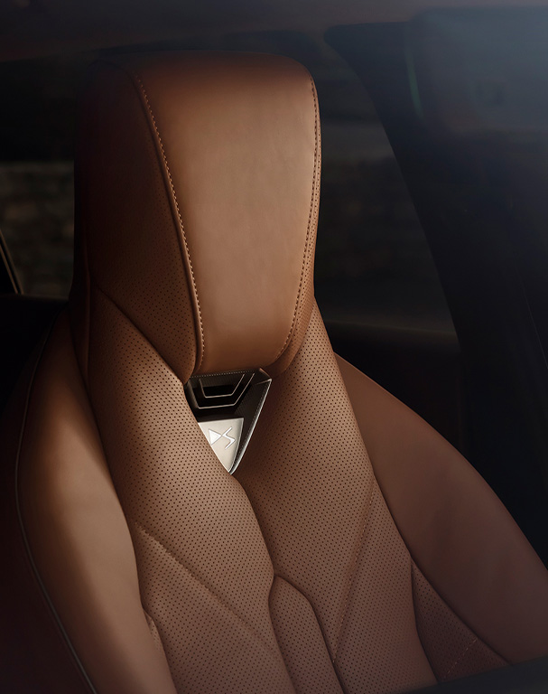Caché dans la tétière des sièges avant et illuminé par un logo DS translucide rétro-éclairé à l’aspect cristal, DS NECK WARMER est inspiré de la joaillerie pour valoriser les matériaux et la finesse du siège. Son diffuseur réchauffe délicatement la nuque des passagers d'un air enveloppant et réconfortant, apportant une sensation de bien-être subtilement maîtrisée au plus près du corps.